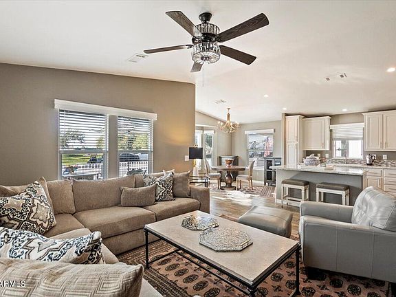 *Golf Cart Included* Step into a life of luxury and convenience in this exceptional 3 bedroom, 2 bath home, nestled in the heart of Monte Vista Village Resort, an exclusive 55+ active adult community in Mesa, Arizona. This rare gem is being offered partially furnished. Experience the epitome of resort living with this property's prime location, just steps away from the vibrant community center, competitive pickleball courts, and refreshing pools. Spanning just under 1400 square feet, this home delights with its large open floor plan, exuding an airy and welcoming ambiance that's perfect for entertaining or relaxing. Pride of ownership shines through in every corner, with the home being meticulously maintained. Upgraded appliances add a modern touch to your culinary adventures, while the expansive patio invites you to enjoy Arizona's stunning sunsets. An additional 10x15 flex space can be used as a storage shed or workshop. The possibilities are endless if you choose to finish the space to accomodate a home office or additional living space.