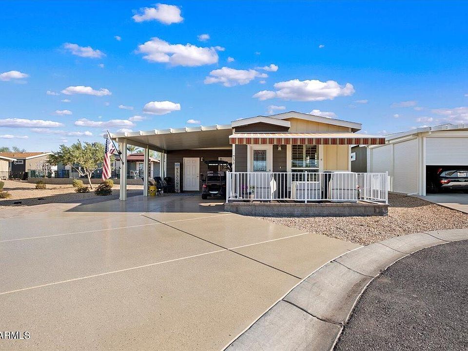 Are you ready to embrace the epitome of resort-style living in beautiful Mesa, Arizona? Look no further, nestled within the highly sought-after Monte Vista Village Resort, where the Arizona dream becomes a reality. This charming property offers an idyllic blend of comfort, convenience, and community, making it the perfect place to call home. As you step into this meticulously maintained 2-bedroom, 2-bath haven, you'll immediately be greeted by an air of modern elegance. The open and spacious layout, spanning approximately 1020 square feet, ensures you have all the room you need to relax and entertain in style. Whether you're a retiree seeking a serene oasis or a snowbird looking for a seasonal getaway, this property has you covered. Situated on a desirable oversized lot, you'll enjoy added privacy and an abundance of natural light streaming through your windows. What's more, the property is conveniently located adjacent to the Community center and East Pool ensuring you're never far from relaxation and recreation. Moving can be a hassle, but not here! This home comes partially furnished, allowing you to move in seamlessly and start enjoying your new life right away. Imagine sipping your morning coffee on your private patio, soaking in the Arizona sunshine, all while surrounded by stylish and comfortable furnishings. Upgrades abound from the inside out with upgraded flooring, shutters on all windows, remote controlled ceiling fans in every room, upgraded appliances, Phantom screens on exterior doors, retractable awning with wind sensor and LED lights as well as an epoxy coated driveway.