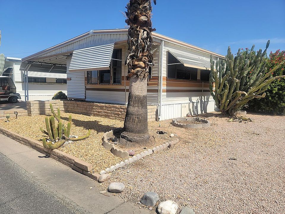 MONTE VISTA 55+ RESORT......Updated 1 bed/1 bath with large enclosed AZ room. Sits on a corner lot with views of the Superstition Mountains and huge back yard with mature landscaping and an orange tree and cactus. Fully Furnished with all you need. Large workshop/store room/laundry room. All appliances including full size washer/dryer, dishwasher, above range microwave. Central air/heat. Larger kitchen and bath for wheelchair access if needed. Laminate flooring. Sleeps 4+. Located in the most desirable MONTE VISTA 55+ RESORT with full amenities (5 pools, 3 hot tubs, 5 dog parks, tennis, softball, pickleball, bocce ball, putting green, pottery shop, silversmithing, wood shop. Concerts ,dinners, concession stand, food trucks. 24 hour Security and gated entry. This is luxury living at the most affordable price! REALTORS....bring your buyer and receive a commission! Taking offers for quick turnkey sale owner illness forces sale. Shown by appt only.