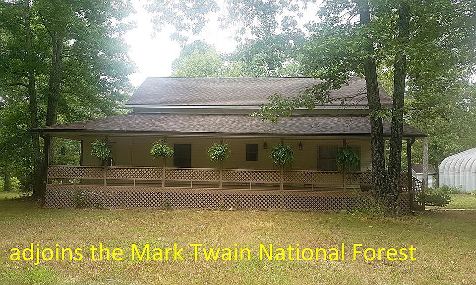 This well maintained home adjoins the MARK TWAIN NATIONAL FOREST ON 2 SIDES! It sits back off a state maintained highway, but the driveway is flat and easy to maintain. The 30' BY 50' QUANSIT METAL BUILDING WITH A CONCRETE FLOOR has electricity and a garage door. An appointment with the owner / agent is required to show this property, which is otherwise posted no trespassing. There are about 5 cleared acres that are mostly flat as well as other fairly flat areas that could be cleared if desired. The home has as of 2022 a NEW ROOF, NEW GUTTERS, NEW STOVE, NEW REFRIGERATOR, AND A NEW WASHER. In 2021 a NEW HOT WATER HEATER AND A NEW DISPOSAL was installed. The pressure tank is just a few years old. The EXPANSIVE DECK AND FRONT PORCH were STAINED IN 2021. The main floor has oak hardwood floors with tile in the laundry, sunroom, and bathroom. The deck and porch are joined by a sunroom. The upstairs has lots of room for beds and a sitting area. The lower level has a bedroom with a walk in closet and adjoining bathroom. There is also a sitting area, dining area, and a kitchenette on the lower level. The main level has oak hardwood floors with tile in the bathroom, sunporch, and laundry room. 2022 PROPERTY TAXES are 1383.99. The owner / agent will want a preapproval or proof of funds to show. All the measurements are approximate.