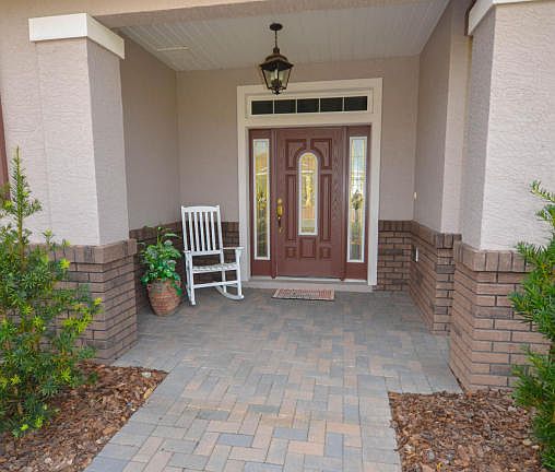 LOTS OF UPGRADES MAKE THIS HOME BETTER THAN NEW! This beautiful, nicely appointed, 2015 custom Lochearn II model home is located in the much-sought after gated 55+ Golf Community of Candler Hills. Upgrades include 5" baseboard molding throughout, crown molding in main living areas, gas cooktop and stainless wall oven, custom tile backsplash, large 6' X 24" deep pantry, laminate flooring in main living areas and bedrooms, deluxe 42" Maple paneled cabinets with crown molding and roll outs in kitchen, granite counters with half bull-nose edge in Kitchen, Maple vanities with pull-outs in baths, deep soaking tub and large walk-in shower in Master Bath, screened Lanai under roof with paver floor, full wall upper and lower storage cabinets and folding counter PLUS additional cabinets above