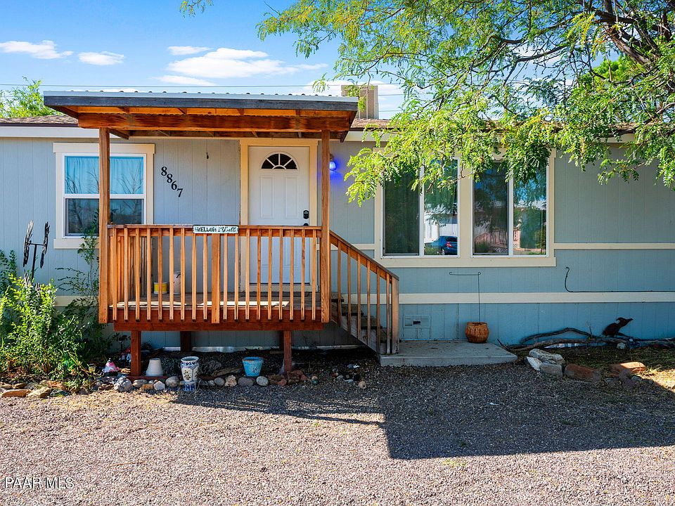 Welcome to 8867 E Roadrunner Drive, featuring 3 bedrooms, 2 baths and an open split floor plan totalling 1,188 sq ft. This home is priced to sell and includes laminate floors, granite countertops, stainless steel appliances and plenty of storage! Brand new roof, newer windows, newer swamp cooler, newer paint and new doors! The backyard is completely fenced and the views are as far as Mingus Mountain. The shed in the backyard allows for extra storage and a place to keep yard equipment. Close to Yavapai Regional Medical Center east campus. Minutes from shopping, dining, movies, hiking, and so much more. Schedule a time to see us today!