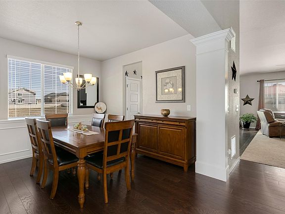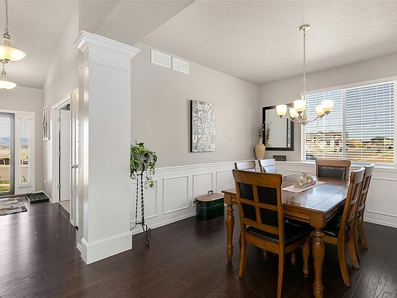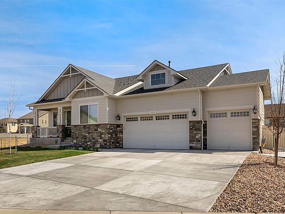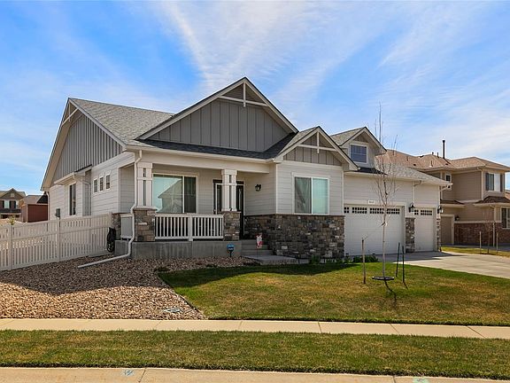 Welcome to Firestone's coveted Saddleback neighborhood! This move-in ready home features hardwood flooring, brilliant natural light, soaring ceilings and front mountain views! The upgraded, eat-in kitchen is well equipped with granite countertops, plentiful cabinetry, a center island with seating, and stainless steel appliances including double ovens and a gas range. The downstairs master suite offers a vaulted ceiling, two walk-in closets and en suite bathroom with split vanities, a soaking tub and a separate shower with seat. The spacious, finished basement includes a rec room, office space and a conforming bedroom with attached 3/4 bathroom. Enjoy the Colorado outdoors in this well-appointed backyard with a flat, manicured yard, 5 new trees and a newly poured concrete patio with side walk. Attached 3-car garage. Walking distance to Saddleback Golf Course. Close proximity to Safeway, Frederick Recreation Area and Milavec Reservoir. Full-house humidifier & radon system added in 2017.