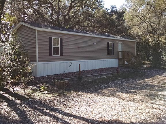 Remarks: Land and privacy...Brand new 2018 never been lived in ''Live Oak'' 14'x56' single-wide mobile home, comfortable and cozy, this home features 2/2 split bedroom floorplan with inside laundry room, double-pane energy efficient windows, open kitchen/family area with moveable center island in kitchen. You'll enjoy the large 12'x24' private rear deck perfect for BBQ or relaxing with your morning coffee. Lots of peace and quiet in a beautiful country setting (yet close to everything) with plenty of elbow room on fully-fenced 4 lots = 5 acres that includes established landscaping, several fruit trees, and beautiful grand-daddy oaks. Two detached storage units and a 40' steel shipping container will come in very handy for outside storage or workshop. No HOA and low taxes are a bonus!