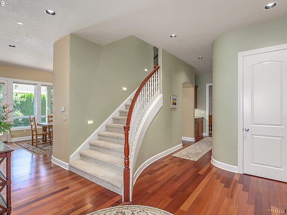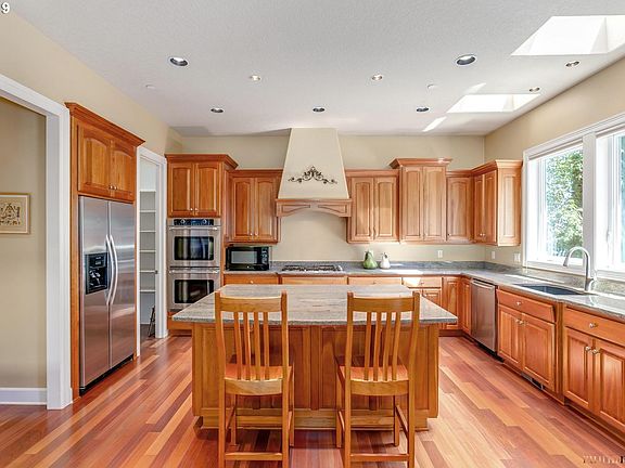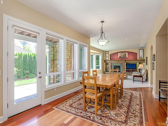 Dream floor plan! Secondary beds all have full en-suite baths w/fresh paint. Master is a true retreat with a library,double-sided fireplace & deck. Master bath w/towel warmer,large walk-in closets with built-ins and beautiful garden tub.Lots of room to work & entertain/play with 2 offices, den & bonus room,sport court,fire pit,covered patio & rope rack for thule/yakima car top unit in garage.Extensive storage & Views of Mt Hood & Adams.