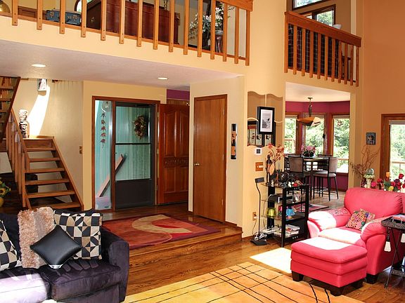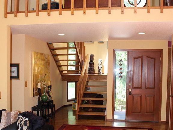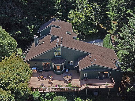 PRIVATE Stunning Mercer Lake & mountain views on 2.7 park like wooded acres. Three decks to enjoy outdoor living w/2 retractable awnings. Solid hardwood flooring, glassed in sunroom w/hot tub off living room. Family room, bonus room w/lots of storage. Vaulted throughout. Comfort flow heat pump systems (2007); Roof(50 yr) 2003, outside painted approx. 5 years ago. RV or boat parking; minutes to town.