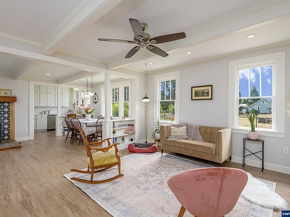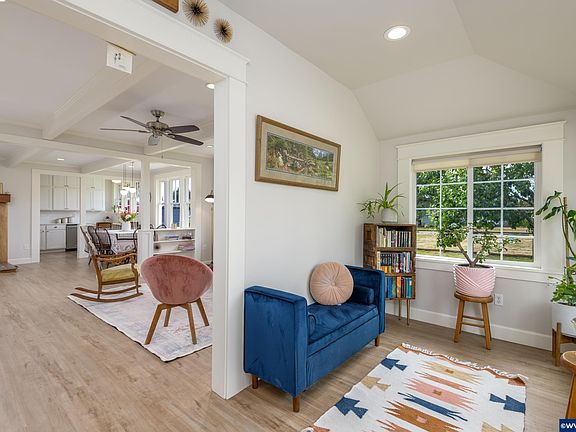 Incredible Willamette Valley Acreage Property, emphasizing awe-inspiring features and amenities throughout this striking craftsman style home, and idyllic property 15 minutes from West Eugene. This stunning remodeled farmhouse features 1898 SF of ample living space, abundant flex space throughout for offices, playroom, or craft room, alluring natural light with a wonderful open floor plan, perfect for entertaining.