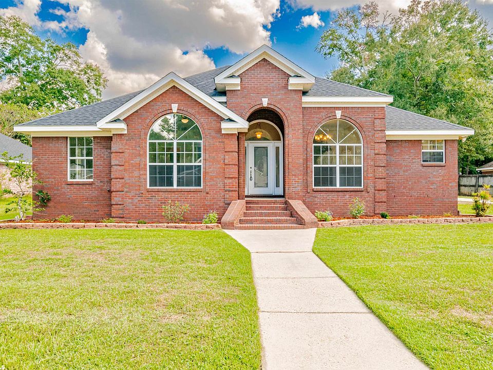 MOTIVATED SELLER! Beautifully updated, custom built home, in popular Augusta Subdivision in West Mobile!  You walk in to an open foyer, dining room and great room area with beautiful arched doorways and windows, tall ceilings and a corner gas fireplace. Off of the great room is a sunroom with a view of the patio and fenced backyard. This bright, open and airy home has all new interior paint (Agreeable Grey), with tile and laminate flooring throughout. NO CARPET!  Split bedroom plan for privacy. Two guest rooms in front of the home, tons of light from the arched window in one.  The large primary bedroom is in the rear with French doors, a special ceiling feature and arched window. Primary bath offers double walk in closets, separate vanities, and jetted garden tub. Kitchen has new stainless appliances, a breakfast area and a breakfast bar.  New roof was installed in 2023.