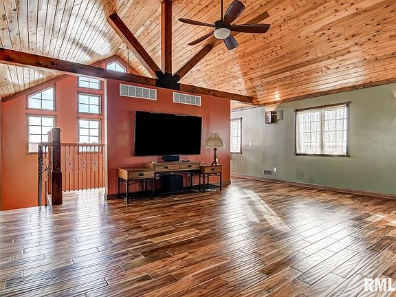 This one of a kind, 4 bed, 2 full & 2 half bath home in Pleasant Plains School District sits on 2.12 private acres! Walk into a beautiful open foyer w/ wood beams, fallow deer antler chandelier, & coat closet w/ sliding doors opening to a HUGE recreational room (built as raised dance floor) w/ bar area, gas log fireplace, mirrors & spiral stair case! Above that you have a loft area, sitting area w/ another fireplace, & living room w/ lifted floor for theatre room seating! The large master suite features a wood burning stove, large walk in closet, master bath w/ dual sinks & jacuzzi tub! The original part of the home offers 3 good sized bedrooms (4th being used as laundry, add'l hook up in basement). Custom closet organization throughout, updated main floor bathrooms! Cozy kitchen & living room w/ fireplace & family room in basement. 2 car attached deep garage with workspace, pole barn w/ 7&9ft doors, whole house generator, 3 decks, paved driveway, and so much more! Pre-inspected!