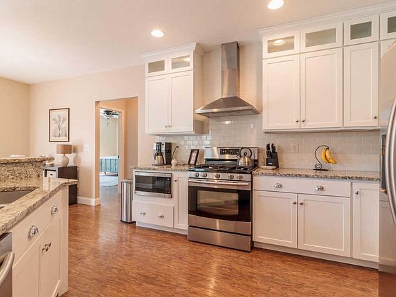 What a STUNNING HOME! Newer laminate flooring, base trim & updated lighting throughout the main floor. Kitchen highlights a double row of shaker cabinets, tiled backsplash, SS appliances & granite countertops. Enjoy time watching tv & gathering in the 2-story great room. 1st floor master bed & updated master bath are a generous size. Master bath showcases a fresh subway tile shower, new vanity top, lighting & flooring. Mudroom, with entrance from garage, boasts additional modern cube storage & laundry area with ceramic tile floors. On the upper level, you will find 2 add'l beds and a full updated bath. Relax on the huge rebuilt deck & pergola - and no neighbors behind you! 3-car garage provides added storage for lawn equip & bikes. Agent owned.