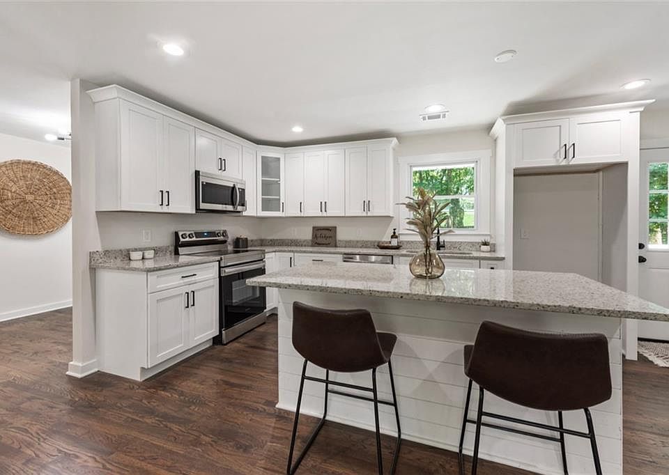 - Features: Cabinets White, Kitchen Island, Stone Counters