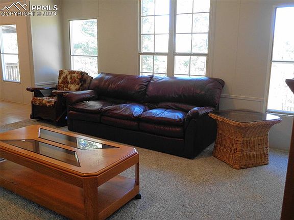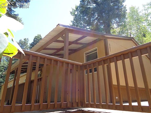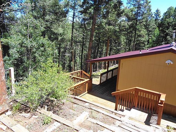 Refreshed and ready for you! Adorable 3/2 single wide on 2.58 acres of mature pines. New interior and exterior paint. New carpeting. Brand new cistern connected to the central water system, so all you need to do is move in and enjoy your mountain lifestyle. Living area is open and light with large eat in kitchen and living room large enough for 2 sofas to enjoy the free standing wood stove on those chilly winter evenings. Master bedroom with private 5 piece bath and walk in closet is opposite end of home with the two smaller beds and bath. This would be a great starter home or "go-to" location less than 2 hours from Colorado Springs. Located about 15 mins from Historic Cripple Creek amenities. Gold medal fishing, Florissant Fossil Beds National Monument, Mueller State Park...all less than an hour away. Association amenities include pickle ball court, indoor pool, weight room, sauna, playground and green spaces.