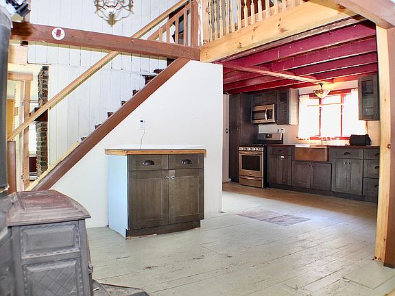 cozy wood-stoves and a charming fireplace. There is a one-car garage, plus a generous outbuilding with a wood-stove that can be used as a workshop, studio, or additional storage space.