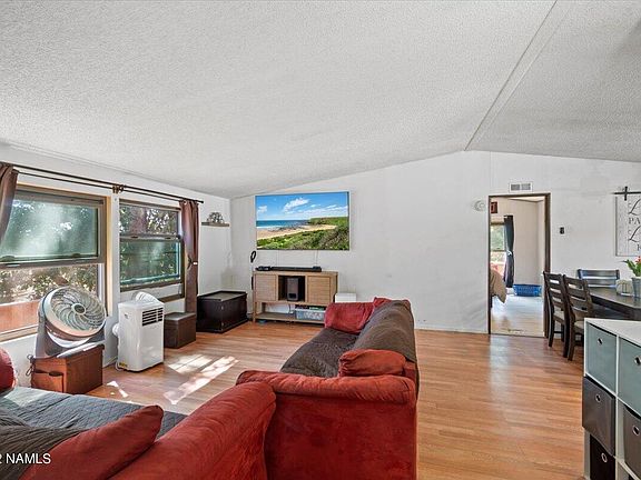 Amazing location with large deck overlooking undeveloped forest! This beautiful home features vaulted ceilings and spacious split floor plan. Garage has been partially converted and is currently used as an office. No HOA! This is an amazing opportunity to live in Flagstaff, close to down town, with quick access to trails.