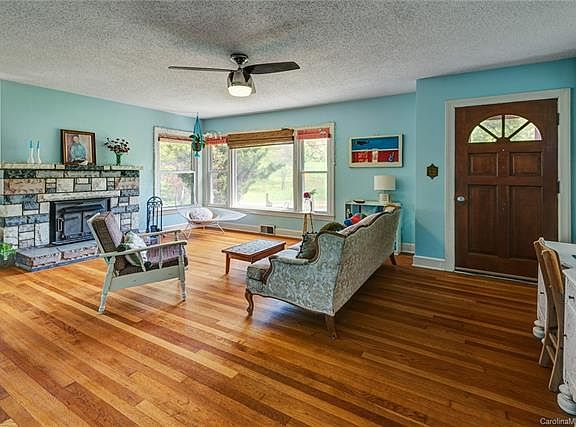 Feels like you are living in the country, yet minutes from everything Asheville has to offer! Lovely frontage on Dix Creek plus an adjacent spring, mature fruit trees and landscaping provide a peaceful setting for relaxing at home! Garden space and covered back porch, perfect for enjoying the large 1.20 acre lot. Newly built studio with Wifi provides additional space to explore your artistic side. Interior features include a beautiful stone fireplace in the living room and spacious open kitchen with plenty of cabinet and counter space. Full basement with concrete floor, garage and shelving for storage. This beautiful home will not last long!