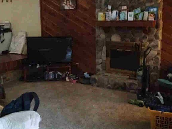 THIS HOME HAS LOTS OF CHARM. LIVING ROOM HAS A STONE FIREPLACE AND WOOD ON WALLS WITH HIGH CEILING AND SKYLIGHT. THE KITCHEN AND DINING AREA HAS HARDWOOD FLOORS. THE DOORS FROM THE DINING ROOM AND KITCHEN OPEN ONTO THE COVERED DECK. THIS HOME HAS A LARGE LOT WITH DETACHED 2 CAR GARAGE. THERE IS SPACE ABOVE THE GARAGE TO MAKE A ROOM OVER. COULD BE A MAN CAVE!! A MUST SEE !!