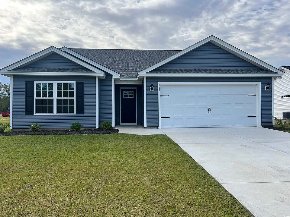 Night Owl Farms is proud to offer the Sewee II floor plan! In this Move-In Ready Home you will enjoy 3 bedrooms all on one level with light and bright kitchen, dining area, and family room that incorporates an open layout. Designer kitchen featuring a large work island, stainless Steel appliances, profiled Aristokraft™ Shaker style Cabinets with hardware, granite countertops with polished stainless steel sink, durable waterproof laminate flooring in main living areas with stain resistant carpet in bedrooms. Interior trim package includes window casings and stool for durability and appeal, relaxing baths with cultured marble countertops with integral bowl; executive height vanities in all bathrooms; elongated toilets; contoured fiberglass shower and tub units. Maintenance free exterior features such as premium vinyl siding, soffits and fascia; and high performance GAF™ Architectural shingles. Night Owl Farms is located off of Hwy 501 just 20 minutes to downtown Conway and minutes from Hwy 22 with quick access to Myrtle Beach, Little River, North Myrtle Beach, etc. Building lifestyles for over 35 years, we remain the Premier Homebuilder of new residential communities and custom homes in the Grand Strand and surrounding areas. In 2022, 2021, and2023 we received the Best Home Builder award from WMBF News Best of the Grand Strand. We want you to experience the local pride we build today and every day in Horry and Georgetown Counties. We are excited to welcome you home at Night Owl Farms! Photos, colors, and layouts are for illustration purposes only and can vary from home to home. Customization may be possible – call listing agent for availability. Square footages are approximate.