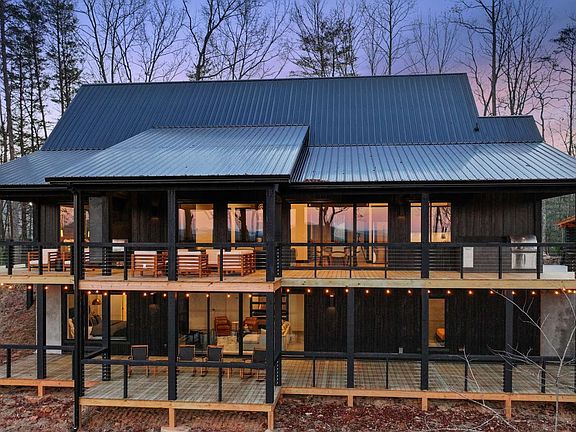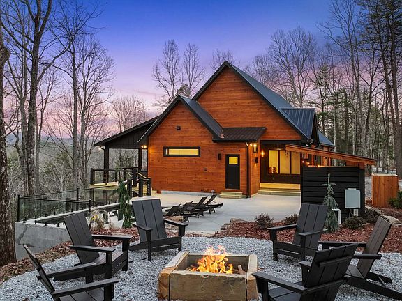 Discover mountain living redefined in this contemporary new construction lodge in the heart of the Aska Adventure Area with stunning year-round mountain views! Fully furnished and complete w/ five bedrooms (potential to sleep over sixteen), two levels of open concept living, soaring cathedral ceilings, walls of glass, gourmet kitchen, two laundry areas, walk-in tile showers, wood cladding interior, sleek fixtures and cabinetry throughout, expansive main level party deck w/ floating fireplace. Immersing guests in nature while creating a peaceful sanctuary, the retreat opens up to a large in-ground modern spa/jacuzzi pool and concrete sun deck + firepit den w/ partial spa bathroom! One of few homes w/ deeded Toccoa River access, year-round mountain views, and minutes to both Downtown Blue Ridge and Lake Blue Ridge -- this new construction home could be the next IT DESTINATION luxury rental retreat in the Blue Ridge Mountains!
