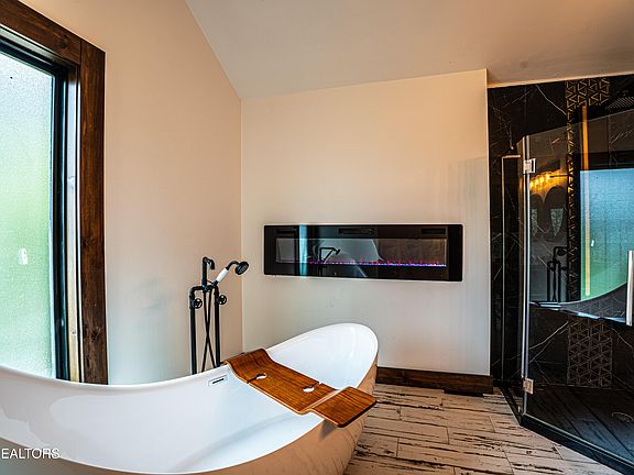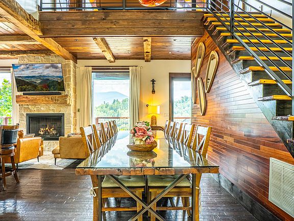 Breathtaking smoky mountain viewsCozy fireplaceOpen concept kitchenHot tubReclaimed wood accentsSwim spa