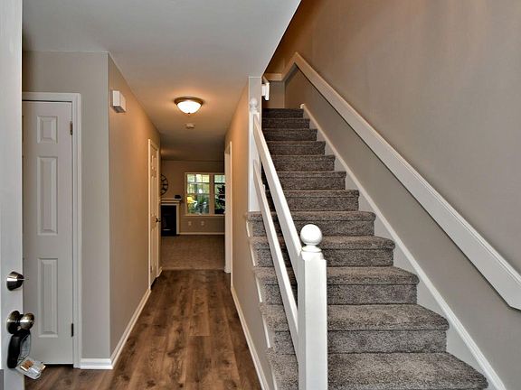 Welcome to this beautifully updated end unit townhome. Enter into the open foyer with brand new flooring and brand new half bath. Brand new kitchen with granite counter tops, under mount sink, disposal, white cabinets, stainless appliances, subway tile back splash. Dining area off kitchen with lots of windows. Large living room with all new carpet and wood burning fireplace that leads to the over sized sunroom with new flooring over looking wooded area. All new windows offer plenty of natural light! 2nd floor with all new flooring and 2 completely redone full bathrooms. 1 bath room with a shower the other with a tub. New interior doors and hardware, all new painting through out. Newer gas heat, gas hot water and central air. Full basement is freshly painted offering lots of storage. NO FEES! End unit with lots of yard space, located on a cul de sac and backing to woods. Great location. Wonderful Opportunity!