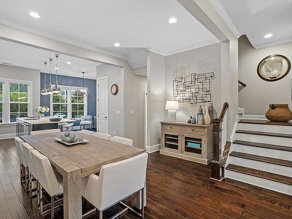 Midtown beauty inside the beltline. Immaculate doesn't even begin to describe the interior; this townhome looks like it's been barely lived in. Hottest location in Raleigh. ½ mile to Trader Joes, Wegmans, Torchy's, DSW, Ulta. A few miles to new Ironworks, Five Points and to both North Hills and the new Midtown Exchange off St. Albans. Ask about exciting plans for townhome community's future connection to Midtown Exchange.     Hardwoods throughout entire floorplan. 10' ceilings, stunning kitchen with top of the line appliances, huge quartz island, unique and modern cabinetry with pull-out drawers. Sitting area/library/or dining area directly behind. Large pantry. Open floor plan to family room filled with light. And the best part, a door opening to a fantastic balcony porch (covered). Look across to trees, not other townhomes. This is a coveted first row location with a high lot premium when built. Dining area could also be put between kitchen and family room (as shown).     Stunning master with wood beams and barn door leading to a gorgeous bath. Two other bedrooms upstairs with another full bath and laundry. AND, a LARGE lower level bonus room with its own entrance to the front patio. Also perfect for an additional teen/guest suite or office.     And then the garage! Extensive, high-end storage system, a sight to see. Epoxy floors and painted throughout.