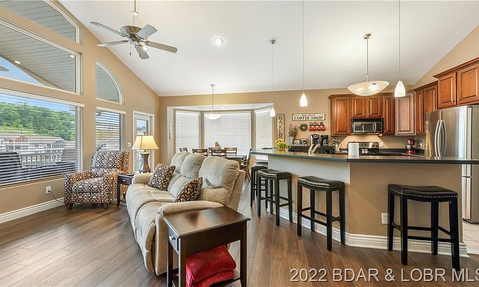 If you are looking for one the most meticulously maintained villas, then this will be perfect for you! This luxury Lakefront villa is located in a gated community centrally located in Osage Beach. This home offers 4 bedrooms, 3 full bathrooms, over 2800 sq ft., 2 car attached garage, & requires zero maintenance. All new flooring and paint throughout make this home look new! The 12x36 ft. boat slip is situated directly in front of your villa making it easy to keep an eye on your boat. From the moment you walk inside you will love the open concept floor plan with large, vaulted ceilings. The large kitchen is perfect for entertaining all of your family & friends. Main level living for full timers yet a large, finished basement with 2 additional bedrooms, a second laundry room, and full bathroom which is perfect for all your guests. This home is located close to the hospital with easy access to Highway 54. The golf cart is included and a 14x36 ft.