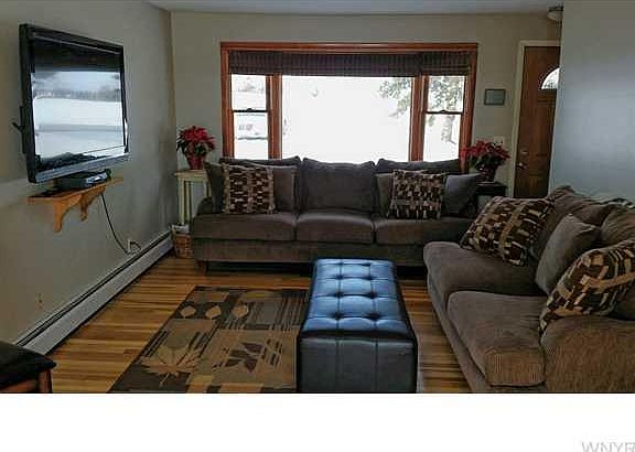 What a great piece of property this 2bd, 1 full bath Ranch home on almost 1.6 acre lot features update kitchen, first floor laundry, pantry, LR/DR combo features breakfast bar, slider onto back deck which is length of house and can also be accessed by master bedroom, overlooking their land,32 x32 well lit and insulated, 2nd 4 car plus garage with man door and backdoor, surround sound, cable and is heated with propane and has concrete floor.
