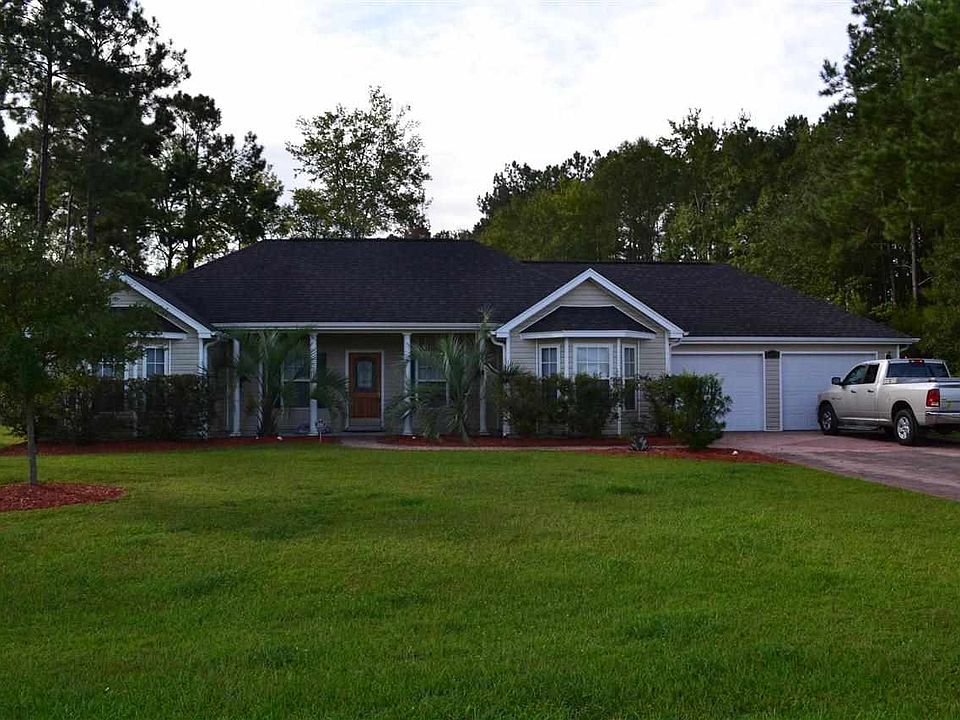 Quite and Country not far from the beach. This 3 bedroom 2 bath 2 car garage has mature landscaping and sits on 1/2 acre of land. NO HOA dues This home has plenty of upgrades that include: red brick patio and driveway, Electric fireplace, fenced in back yard, security system, front porch,stainless steel appliances,laminated floors,tile,washer and dryer, very close to Schools, markets, and shopping. Call today for this deal will not last long!