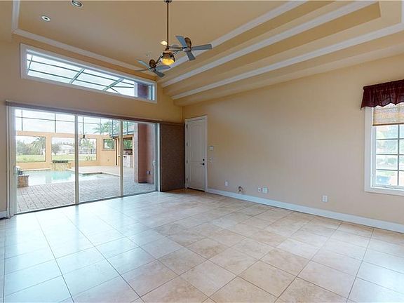 Incredible 4 bedroom courtyard pool home with 3 and 1/2 baths. The salt water pool is electric heated. Pool cabana is connected to the outside kitchen with BBQ grill, fridge and bar and has it's own full bath and walk-in closet. As you enter the house by the front door you are greeted with the sound of a waterfall at the pool and beauty of planters with native greenery. Entering the house itself, you walk into the beautiful living room with the formal dining area as well. The master bedroom is on the first floor with large walk-in closets, beautiful master bath with soaking tub and dual vanities. There is a large family room that overlooks the pool area as well. The island kitchen has tons of room, walk-in pantry, granite countertops, commercial sized built-in refrigerator and freezer, 2 wall ovens, electric cooktop and microwave. Upstairs are three more bedrooms with private porches. The entire house has high ceilings, upgraded fixtures, remote lighting with dimmers, tall baseboards and the downstairs has crown molding. Gated community with great maintenance standards and this house sits on a large lake as well. This is a great deal for a beautiful custom home.