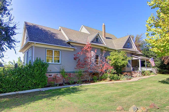 Beautiful remodeled Victorian on 2 acres with River frontage, fabulous views, and a country lifestyle just minutes to Downtown. Home offers 10' ceilings, hardwood floors, master suite, kitchen family room combination, 2 fireplaces, and a sep. office and eatery, new kitchen and baths. Courtyard w/fireplace, 4/5 car garage, full basement. Too much to mention, a must see property.
