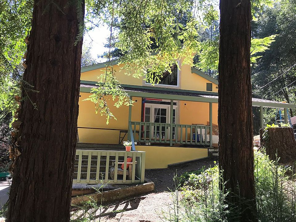 Turn of the century farmhouse on pretty acreage with lots of outbuildings and a detached cottage! Home needs a lot of work to return to its original charm but has knotty pine paneling, some wood floors, an open eat-in kitchen, newer roof and tons of storage. The partially finished basement has lots of potential uses. Spring-fed pond and terrific well production. Some lovely redwoods & fir trees. Up the hill is a level area with views.
