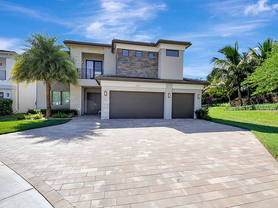 Gorgeous 2 Story Pacifica Model located in LOTUS, Boca Raton's most sought after community, situated on a prime, cul-de-sac lot with massive driveway, 3-Car custom design garage, specialty floor & cabinetry. Interior upgraded with luxury vinyl throughout entire house, including all closets, custom glass stair rail, designer lighting & ceiling fans, beautiful built-in closets. Fully upgraded kitchen, Wolfe, subzero, & Bosch appliances, Upgraded countertops & cabinetry.Master Bedroom is on ground floor with freestanding whirlpool bathtub. 2nd Floor Loft converted to movie theatre room. Outdoors perfect for entertaining; heated swimming pool, jacuzzi & sun shelf, custom design luxury outdoor kitchen with Hibachi, motorized screens, awnings & whole house generator. Furniture negotiable. Country Club living without club fees. Lotus offers resort style living with a bistro cafe and bar. Tennis and pickle ball courts, expansive club, play and game rooms.