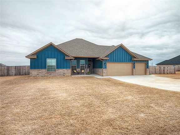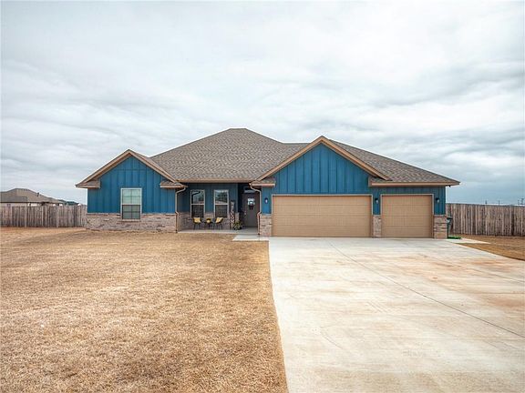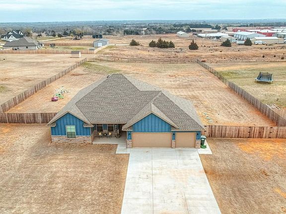 Life is peaceful at this beautiful home on 1.03 acres. Located in award-winning Edmond Public Schools. Enjoy all of the conveniences of Edmond with a peaceful country feel! You'll love the covered porch and patio - perfect for enjoying the quiet country life. Inside has 4 bed or 3 bed + study, 2 baths, living, dining, and tons of storage. The kitchen boasts tiled backsplash, under cabinet lighting, a farm sink, eat-at bar, stainless steel appliances & corner walk-in pantry. The master suite has a large walk-in closet, tub, walk-in shower, dual sinks & separate water closet. Additional features: post tension engineered foundation, 3 car garage, recessed soffit lighting, personal well & aerobic septic. Neighborhood entrance to be updated with sign & lighting. Work to be completed by the developer, Schedule your private showing today! You won't want to miss your chance to call this one "Home.”