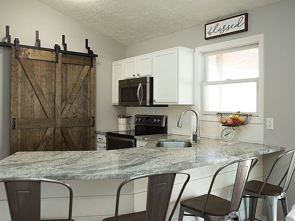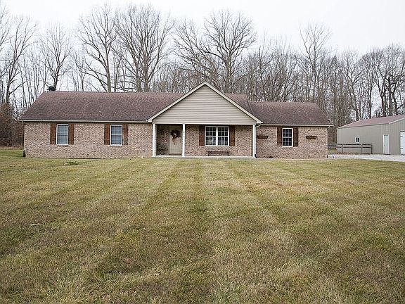 This gorgeous ranch style brick 3BR/2BA home is on 2.02 acres with plenty of privacy. You will live the rural lifestyle, but it's only a quick 5 minutes to Interstate 65. It is conveniently located just 10 minutes to downtown Columbus or 18 minutes to Seymour. This beautiful lot has a 28x40 barn, fenced in back yard, covered patio that leads to a stone walk fire pit. The completely renovated interior features lovely hardwood floors and the spacious open floor layout in the kitchen, dining and living room is ideal for families and entertaining with the wood burning fireplace. The updated kitchen showcases stunning granite countertops, exposed wood shelves, a custom barn door pantry with touches of shiplap and beadboard backsplash. The laundry room is centrally located by all 3 bedrooms. The brand new basement is bright, welcoming and so spacious for your family as an additional family room. The sliding doors lead to an abundance of storage space. It is also equipped with a generator that powers the entire home. In May of 2020 we installed a high efficiency 16 seer AC/heat pump. This is a must see property! Call today for your private showing.