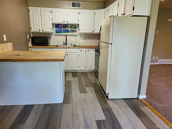 Fantastic opportunity to own an end unit private updated ranch condo with park like setting, across the street from Jewell Park! This unit features a white kitchen with wood butcher block counters and all appliances. The freshly painted open floor plan with BRAND NEW CARPET, 9/28/2022, offers a spacious and light filled living/family room, two nice bedrooms and a full bathroom as well as in unit laundry. Plenty of closet/storage space plus a dedicated storage unit and coin laundry in the complex main building. Two reserved off street parking spaces in parking lot in front of unit. Enjoy the beautiful colorado weather on your spacious back patio and in the common park area. Access to Kendrick Lake Park and Gardens is across the street with running/walking paths, playground equipment, picnic areas and multiple lakes. Close proximity to shopping, dining, recreation, schools with easy access to Belmar/Lakewood Town Center, Downtown Denver and Mountains to the West. A rare property indeed and completely move in ready!