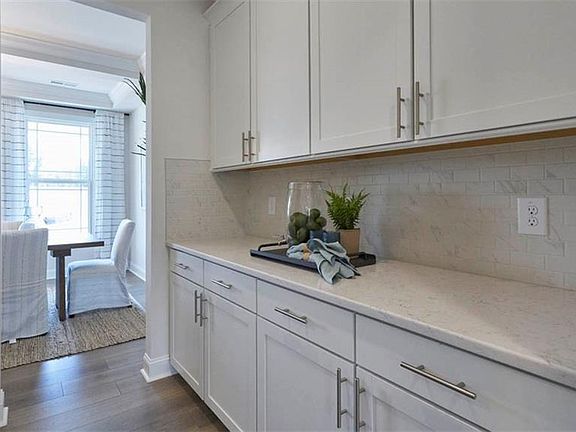 Home is the popular Hampshire-E with side load garage. Home is brick 3 sides and fiber cement on the rear. It features extended foyer that leads past formal dining room into open concept family room, kitchen, and breakfast area. This space is perfectly suited gathering or entertaining. gourmet style kitchen features include huge island, solid counter tops, tiled backsplash, upgraded appliances w/ 5-burner cooktop, stainless steel vent hood, wall oven, and wall convection / microwave oven. Revwood engineered vinyl plank flooring all 1st floor common areas. Main level bedroom adjacent to full bathroom. 2nd floor is host to huge open loft area, large primary suite w/sitting room, two secondary bedrooms, and laundry room. Primary suite has spa like bathroom and huge walk-in closet. Homesite is semi-private and tree lined. Screened in porch w/ extended deck. Up to $5,000 closing cost w/ preferred lender DHI.