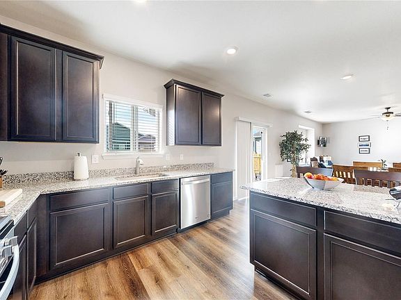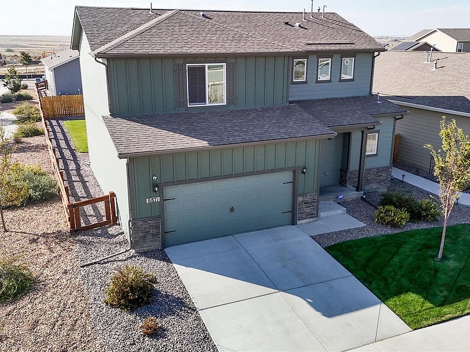 Three year old home in better-than-new condition! Finished with stylish touches everywhere you look, this 3 bedroom 3 bathroom home does not disappoint. Exquisite kitchen with slab granite counters, luxury stainless appliances including gas range, ample cabinet storage space in addition to a spacious pantry. Extraordinary primary suite with plenty of room for a king-sized bed as well as a sitting area/workout equipment/office. 5-piece primary bathroom and oversized walk-in closet with custom closet storage! Two additional bedrooms, laundry room and another full bathroom round out the highly functional second story. This home already has surround sound installed to enjoy your favorite music wherever you spend your time! Spacious 2-car garage with custom storage cabinetry and EV charger. Back patio with porch swing and beautifully manicured yard which sides to neighborhood path. Incredible location with easy access to everything you need! Easy highway access to Denver, 10 minutes to DIA, minutes to major attractions like Gaylord at the Rockies, Barr Lake State Park, Green Valley Ranch Beer Garden, First Creek Dog Park, Bison Ridge Recreation Center as well as many shopping and dining options! A brand new charter elementary school is coming soon as well! For additional photos, drone video tour and virtual walkthough, go to https://v6d.com/cl0 **Back on the market due to buyer's loan falling right before closing. Home has been inspected and appraised without problem!**