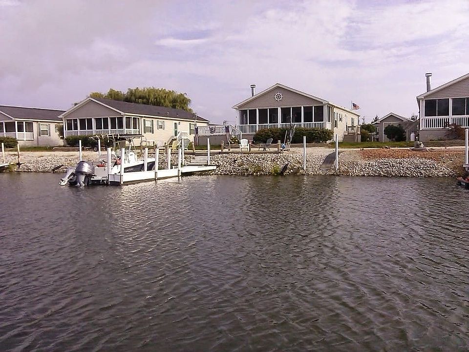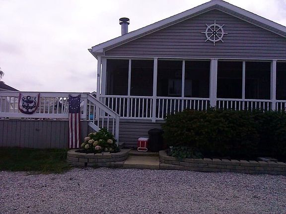 Dock your boat out your back door at this charming move in ready manufactured home. Located on channel off Lake Erie. Main area has open concept, fire place w/french doors leading to screened in porch over looking water. Master bedroom has private deck and attached bath w/ garden jet tub and separate shower. Enjoy year round water sports and beautiful views, all on leased land without high lakefront taxes or flood insurance. Will consider selling furnished. Land lease $420 per/ month.