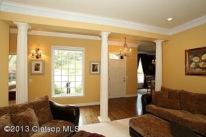 Simply Sensational! The bar is set high for expectations that are surpassed in this meticulously maintained custom home. Appointments include: a great room framed by fluted columns, gas fireplace, 10ft ceilings, hardwood floors, formal dining room, private master & ornate molding throughout. A private covered deck adorned with columns, manicured 1.44 acre site & so much more! A must see home!