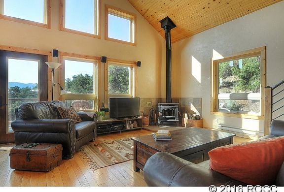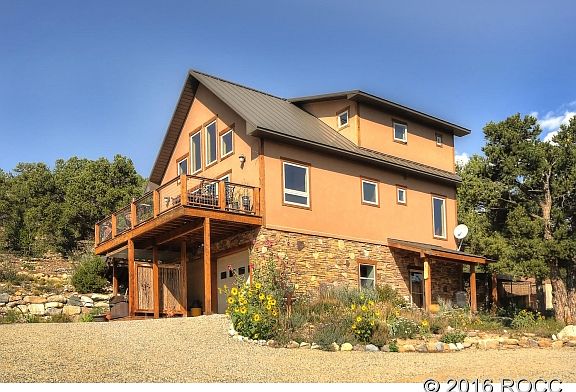 Delightful and unique custom home with high performance energy efficiencies and grid-tied SOLAR. Utilities are $50/month! Solidly built home with contemporary design and deluxe custom touches. Earthy and dramatic, this home is one of a kind. The picturesque setting includes commanding views, outdoor space that is groomed yet natural, and trails that go for miles into BLM land bordering the property. Heated garage, 200 sq ft studio and fenced garden area complete this special property.