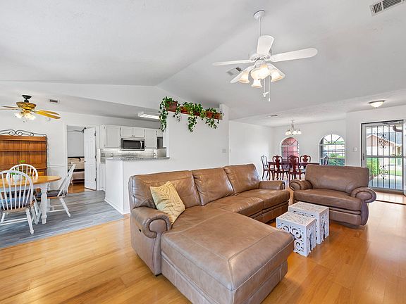 Welcome to your dream oasis! This stunning 4-bedroom, 2-bathroom home is a rare gem nestled just 1 mile from the beach, (9 miles to Hurlburt Field) offering a serene escape with unbeatable convenience. Step into luxury as you're greeted by gleaming hardwood flooring that flows throughout the spacious interior. Entertain in style in the expansive 14 x 15 glassed Florida room, adorned with ceramic tile flooring, where you can bask in the tranquility of your own private bird sanctuary. Unwind on the charming 10 x 10 patio featuring a pergola frame, or soak up the sunshine on an additional uncovered patio - perfect for outdoor gatherings and al fresco dining. No need to worry about the elements, as this home boasts hurricane shutters and a new roof installed in 2022 with architectural shingle The heart of the home is the gourmet kitchen, complete with granite countertops, a beautiful grey ceramic backsplash, and waterproof luxury vinyl plank flooring in the kitchen and breakfast nook. Indulge in relaxation in the master suite, featuring double vanities, a separate tiled shower, and a luxurious garden tub in the master bath. The master suite invites you to a genuine retreat, offering a spa-like experience and a spacious walk-in closet. For added security and convenience, enjoy the peace of mind provided by the Feit electric floodlight with a Wi-Fi security camera. With no homeowners association to restrict your lifestyle, this home offers the ultimate freedom to live and play as you please. Feature sheet in documents but include: New Roof 2022, AAA Taylor 3 zones Irrigation landscaping system with pump, HVAC Trane XL 18i Seer, Hurricane Shutters, Hardwood Flooring, Gas Rheem 50 Gallon Water Heater, Gas Grill/BQ hook up; Granite countertops 2022, LVP in kitchen 2022, Smart Code Keyless entry 2022, Glassed Florida Room with removable glass panels! gas and wood fireplace providing security, energy efficiency, and perfect settings for cozy family evenings. Don't miss out on this unparalleled opportunity to own your own piece of paradise - schedule your showing today!