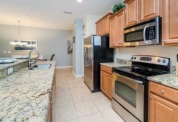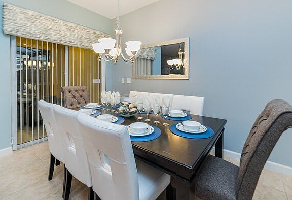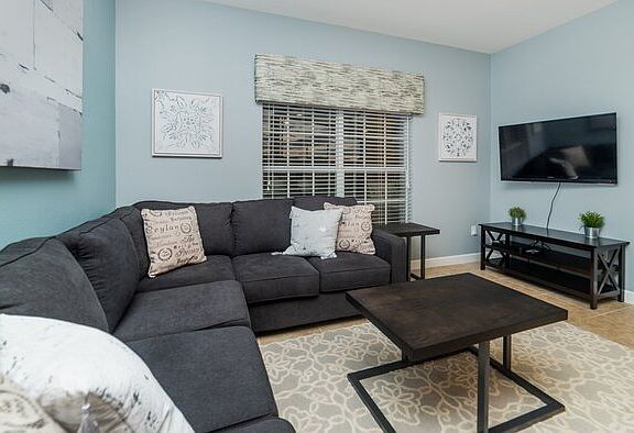 This property is a corporate rental. Please note that the monthly rental price for this property is dynamic and subject to seasonal adjustments. For an accurate quote, provide us with your intended move-in and move-out dates. Paradise Palms Resort Vacation Townhome - includes resort clubhouse amenity access! Our 4 bedroom, 3 bathroom, private vacation townhome is a great option for families wanting a home base to enjoy the best of all that Central Florida has to offer. * Paradise Palms Resort Private Townhome with Splash Pool, Sleeps up to 10 * 4 bedrooms / 3 bathrooms * Private Splash Pool - West Facing * Paradise Palms Resort Gated Community * 5 miles to Disney World property * Fully equipped Kitchen with seating for 8 at the dining table, and additional seating for 4 at the kitchen counter * Pet-Friendly! (with fee, see below)* BEDROOMS (First Floor) - Bedroom 1: One King Bed BEDROOMS (Second Floor) - Bedroom 2: Two Twin Beds - Bedroom 3: Two Double Beds - Master Suite 4: One King Bed / Attached Bathroom A pack\'n\'play and high chair are available for use as well. * This is a pet-friendly home! An additional non-refundable cleaning fee of $150 plus tax will apply when you let us know you\'re bringing your dog. There is a two-dog limit. Pet must be disclosed and the additional fee must be paid prior to arrival. Pool Charges and Information: * There is an additional optional charge of $20 per day plus tax to heat the pool. * Please note that our pools are serviced on a weekly basis. Resort Parking Rules: The resort allows a maximum of 3 cars per townhome. Each townhome has its own numbered parking spaces. You may park on your unit\'s numbered spots or any other unnumbered spots. Paradise Palms Resort Amenity Access Included with Rental: * Massive 5,000 sq. ft. pool * Luxurious hot tub * Exciting water slide * Paradise Palms tiki bar * 50-seat movie theater * State-of-the-art fitness center * Sundry shop * Game room * Internet lounge * Basketball courts * Sand volleyball courts * Lighted tennis courts Distances from Resort to Shopping & Attractions: * Walt Disney World - 5 miles * Universal Studios - 19 miles * SeaWorld - 15 miles * Orlando Airport - 27 miles * Atlantic Coast Beaches - 75+ miles * Gulf Coast Beaches - 92+ miles * Publix Supermarket - 2 miles * Walmart - 3 miles * Dining - 1 mile Why Choose this Rental? * Professionally managed to serve all your needs * Management company has over 26 years of experience hosting well over 200,000 families * Go straight to your rental with online email check-in * 24/7 on-call maintenance * No Resort Fees * Free On-Site Parking * Smoke-free and pet-free for your comfort * Towels and linens are provided * Complimentary WiFi * Additional Rental items Available (e.g., 3 & 4 burner BBQs, cribs, pack-n-plays, strollers, high chairs, etc.) Our Starter Welcome packet supplies: * 2 rolls toilet paper per bathroom * 2 round hotel-size bar soap per bathroom * 1 hotel-size shampoo/conditioner per full bathroom * 1 roll paper towel * 1 packet dishwasher detergent * 2 trash bags size-13-gallon * 1 small box laundry detergent (enough for one load) * Garbage can liners in each bedroom/bathroom small garbage cans * Any supplies beyond this are up to the guest to replenish, we do not restock these items. * No salt/pepper or cleaning supplies are stocked due to safety issues. This is an industry-standard practice. FOR GUESTS WHO BOOK 30 NIGHTS OR LONGER STAYS: (this does not apply if you are staying less than 30 nights) We will collect a $1,500 deposit. Balance is due 60 days prior to arrival If canceled 90 days or more before arrival, we keep with us $250.00. $1,250.00 will be refunded. If canceled between 61 and 89 days prior to arrival, we keep with us the $1,500.00 deposit. No cancellation or modification 60 days or less prior to arrival. Contact us to schedule a showing.