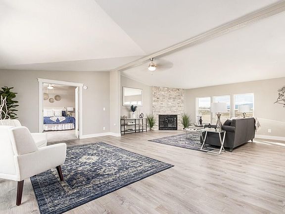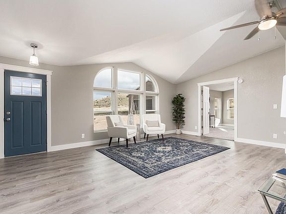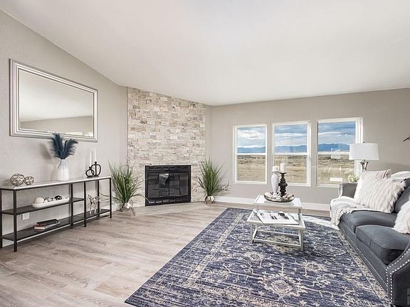 This lovely Valerosa Village rancher offers 3 bedrooms, 2 bathrooms and a detached 6 car garage. The home welcomes you with fresh custom paint throughout and all new flooring. The living room provides vaulted ceilings, large windows with beautiful natural light and a cozy fireplace for the fall and winter months. The kitchen has been completely renovated with a brand new stainless steel appliances, custom tile backsplash and offers plenty of counter space including an island. There are two bathrooms which feature fresh, custom tile work, updated fixtures and new integrated sink vanities. The master bedroom provides two closets and an en suite 3/4 bathroom! The oversized, drive-through garage features concrete slab, a work bench, space for 6 cars with it's 1,296 square feet. This property features municipal supplied water via Wigwam Mutual and has a brand new septic system! The home sits on an expansive 5 acre lot! Located close to schools and easy access to I-25. Ideal home for main level living!