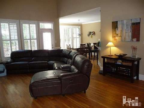 Great home in beautiful Sagewood at Plantation Landing neighborhood. Open floor plan with eat in kitchen, spacious family room with vaulted ceilings and gas fireplace, dining room, and plantation shutters throughout. A first floor master suite and additional bedroom with full bath round out the first floor. The second floor has 2 more bedrooms, jack-n-jill bath, a game room that could be a 5th bedroom, and a custom home theater room (added in 2011) complete with kids playroom. Back yard has been completely updated in the last year with bench seating on deck, beautiful stone patio and custom fire pit as well as professionally designed landscaping. Quite and private setting in a great location convenient to everything. Community has 2 pools, tennis courts, walking trails and club house.