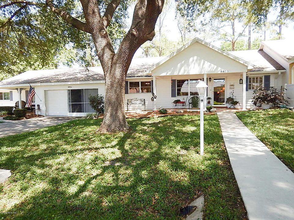 Lovely Suwannee model with 2 bedroom, 2 bath, 2 car carport space, located in America Village. An open and spacious home with a cute front porch, and nice back yard. The whole home is electric. Guest bath is in marble, there is a Jacuzzi in master bath. Indoor laundry, and office in near kitchen.Home has been updated. Bahama Shutters. Bedrooms carpeted and laminated throughout.Located in Ocala's premier, gated, 55+ community, loaded with amenities, including golf cart access to two shopping centers.