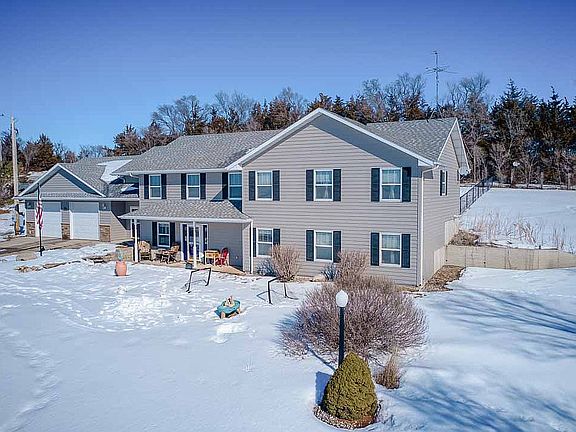 Home and Heated shed on 2.93 acres. 4 Bed, 3 bath built 1999. 3,688' 2-level home. Top Floor: Large living, dining/kitchen open concept, large pantry, large deck just refinished, bedroom, bath, large linen closet, master bedroom & bath with wirlpool. Downstairs: 2 bedrooms, living area, 1 bath, laundry and very large storage area. Attached 2 car garage 1,066' with extra overhead door for side entrance. Outbuilding 8-x48' with floor heat throughout, 2 oversized overhead doors with bathroom.