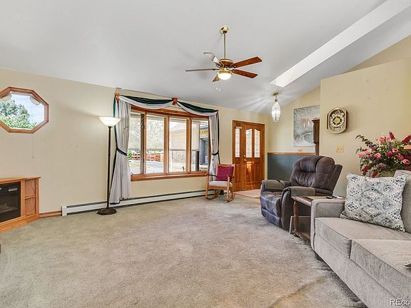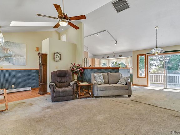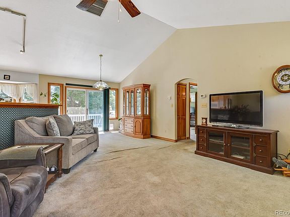 This beautiful 4 bed 3 bath ranch home has great curb appeal and is a must see in the desired Meadowbrook Heights. Located on a large lot and quiet cul-de-sac, there is lots of room for your RV and outdoor toys, including a paved and fenced RV pad with a 6" slab equipped with 30 amp plug, water hookup and sewer connection directly tied into sewer. So convenient to have RV storage with your own free sewer dump & hookups! As you step into the home, you're greeted by open living space with vaulted ceilings and large windows that have natural light all day throughout the kitchen, dining room and living room. The large finished basement has lots of space for a game/media room with a bedroom/bathroom to accommodate your family and visitors. The backyard features a deck, hot tub, trees, established garden spaces and is the perfect space for games in the grass or relaxing on the deck with family and friends. Storage is not an issue with 2 wooden storage sheds outside, a large storage closet in basement, freezer and large gun safe included. The commercial-size evaporative cooler has 6500 CTM, keeping the house very cool, and also has a winter front. Many other bonus features: hail resistant composite roof, gutters with leaf guards, insulated garage with ramp into house. So many features in this home listed AS IS and ready for you to make it your own. The neighborhood offers quick access to C470 and all your essential needs as well as many hiking/biking trails. Come see this amazing home for yourself!