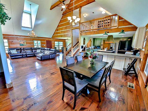 3900+ sq ft custom log home on 30+ Acre equestrian/hobby farm, this log cabin has 4 beds 3 bath, Master Suite with separate tub and grotto stone shower, large laundry/utility room, large island kitchen, office, huge bonus and large covered front and back porches. The farm is set up with a 1.5 acre windmill aerated stocked fishing pond, 12 acres of cross fenced pasture with two shelters, a 6000 sq ft metal barn with two stalls, 20X60 insulated workshop, riding arena and chicken coop. OWNER AGENT