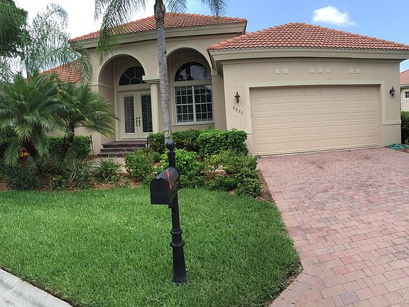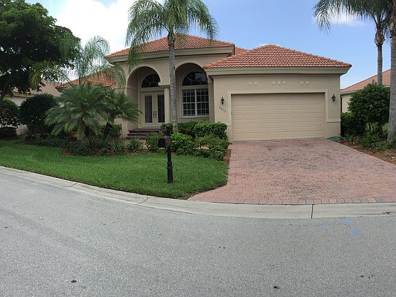 Located in Crown Colony Country Club community. Expanded Sterling model with a long, private, expansive view of a lake and the golf course. Large pool and attached spa. Southern exposure for sun on the pool in all seasons but shaded outdoor seating areas. Beautiful stone outdoor kitchen with grill, refrig. and sink. All granite kitchen with built in wine cooler and bar. All granite baths. Newly professionally decorated with all new light fixtures, fans, and plantation shutters. Hurricane protected with power shutters on all doors.
