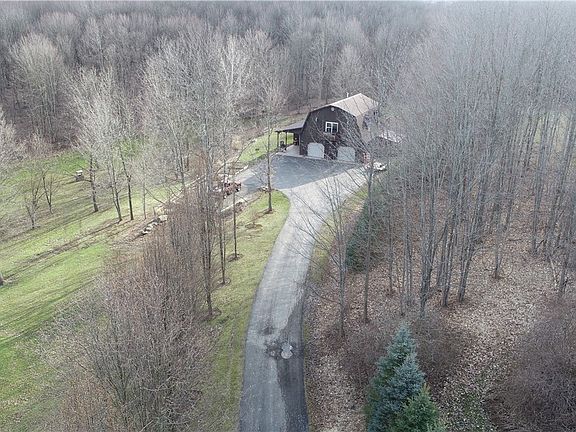 New Listing! Turn key 2 story barn style home tucked back on just over 11 private acres, with scenic views from both decks! If you are an outdoor enthusiast, this is the home for you! With an abundance of wildlife, pond and trails throughout the property, you will be in paradise. The great room features soaring ceilings and an open concept floorplan, highlighted by gorgeous hardwood floors! Ladder to loft area for storage or play area. Bright and cheery kitchen with quartz countertops is sure to please the fussiest of chefs! Glass sliding doors let in a ton of natural light! Lower level has 3 season room which is currently set up as a guest room and leads to the patio. Heating options available with radiant floor heat and a pellet stove on lower level and hot water baseboard heat for remainder of the house. Full bath on each floor! Garage is oversized and insulated! This property is located in the Naples School District and is just a few miles from the Village of Naples. Close to all amenities including top rated golf course, seasonal theatre, wineries/breweries, 2 ski resorts and several of the Finger Lakes are less than 20 minutes away!